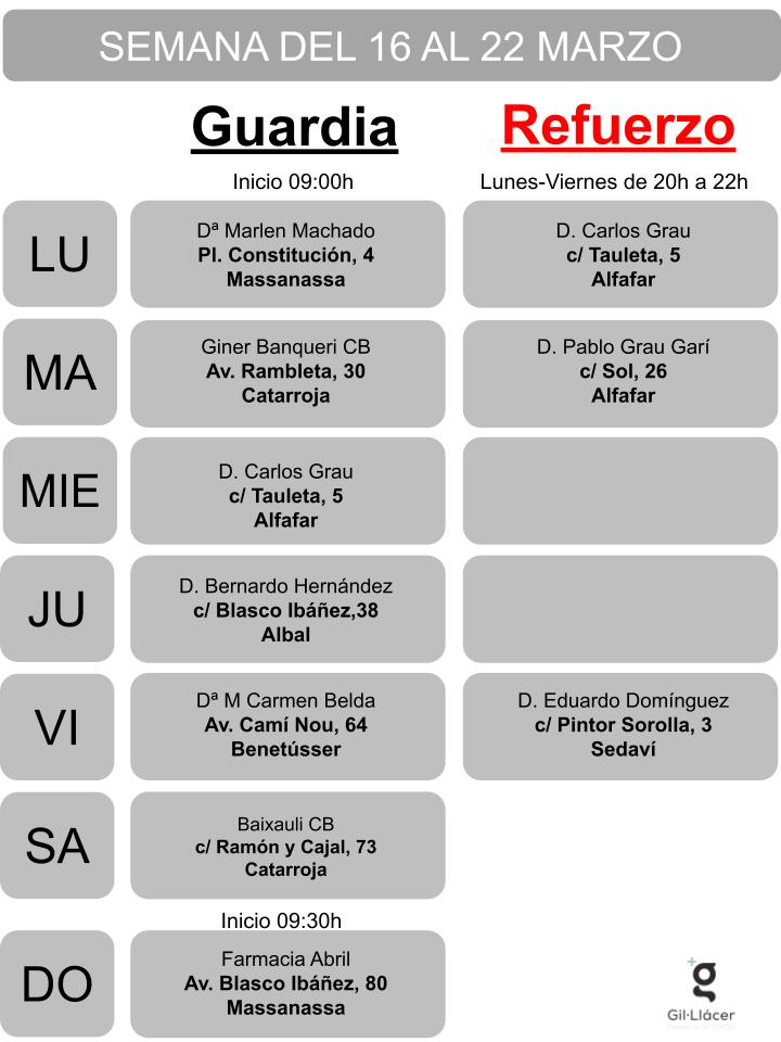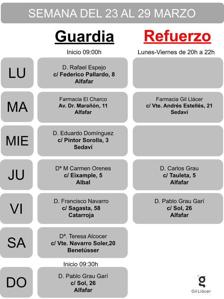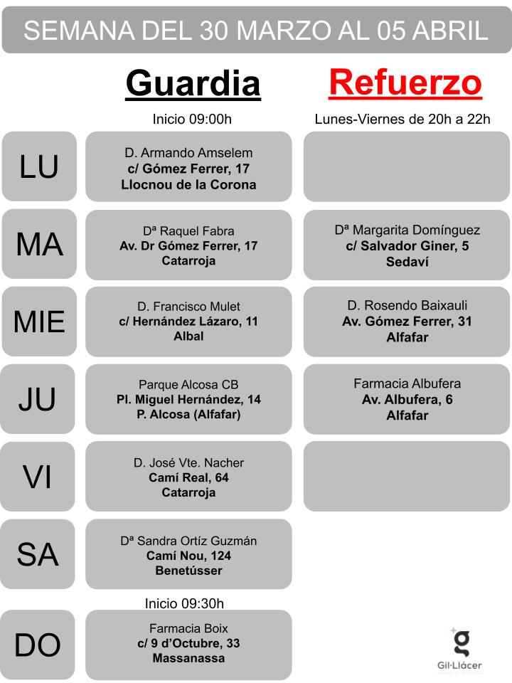 Farmacia de Guardia en Sedaví, Alfafar, Benetússer, Catarroja, Albal, Massanassa, Parque Alcosa y Lloc Nou de la Corona.